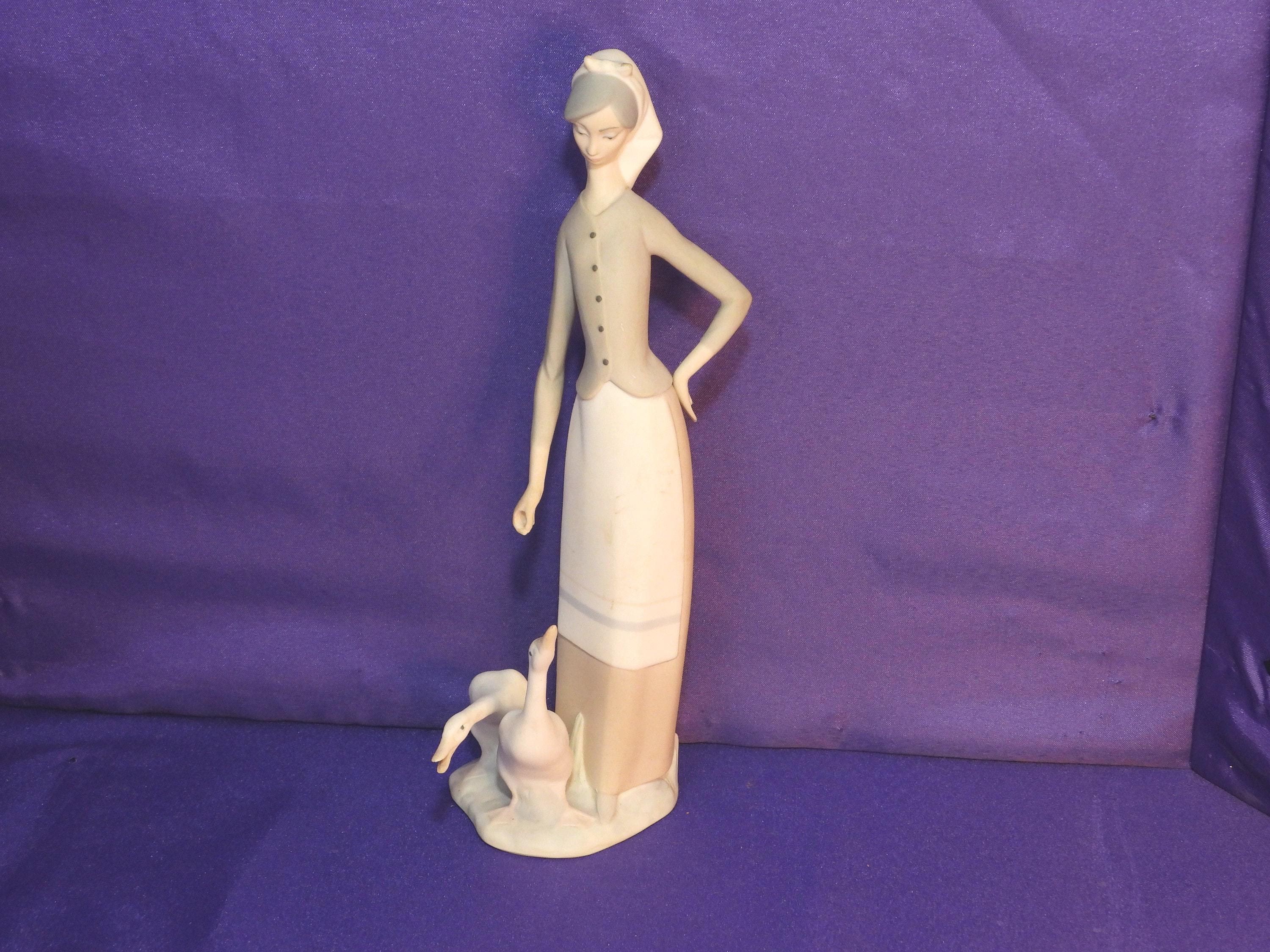 From the shelves of Pimbleberry, we have this retired Lladro #1035 Statue titled ‘Girl with Geese’. While the piece may not be sold anymore, it certainly hasn’t lost its beauty as the soft muted colors of the statue make it a charming yet simple decoration for any room in the home. Whether you’re someone completing their Lladro collection, or just someone looking to bring a connection with nature into the home this would make the perfect gift for you!