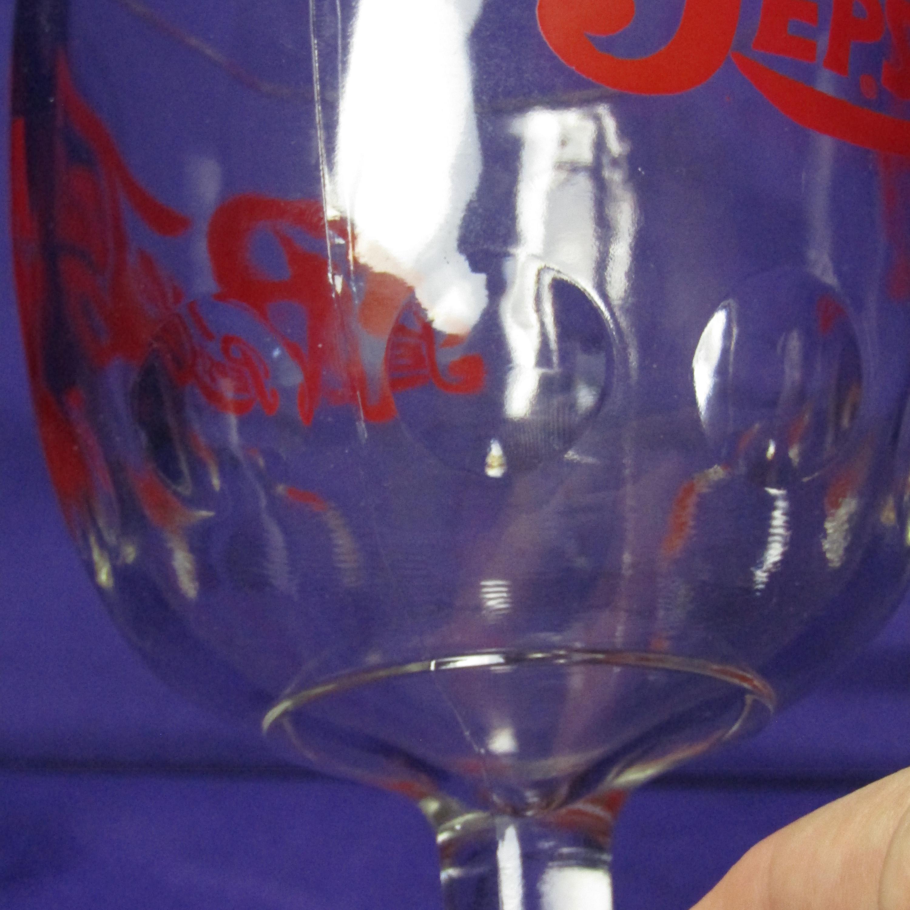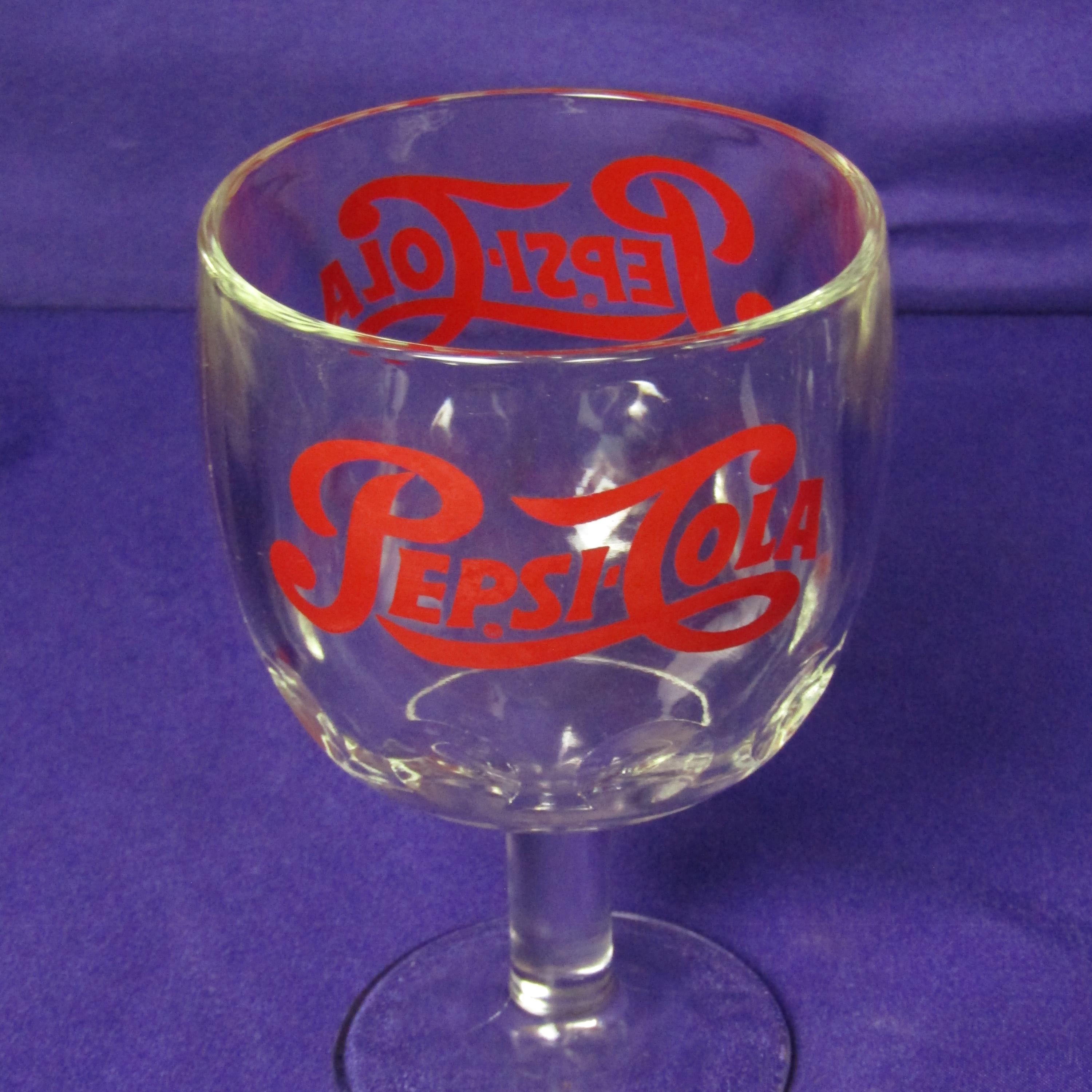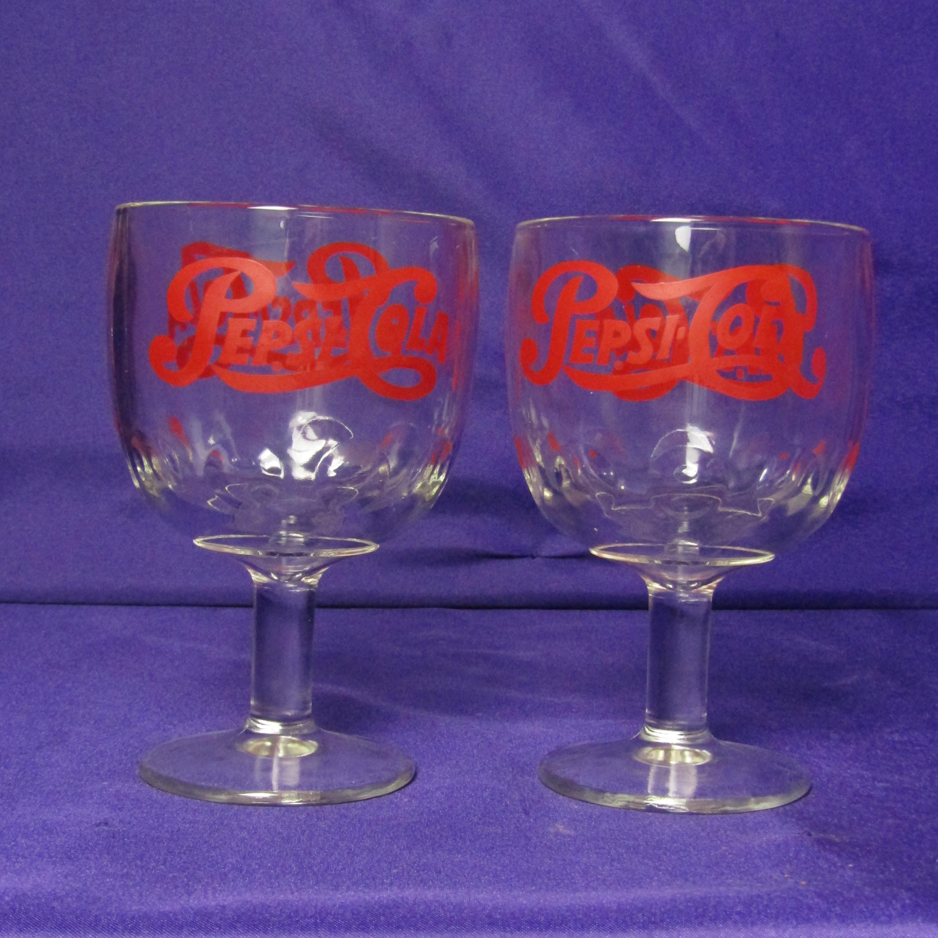 This pair of vintage Pepsi-Cola glasses showcases the classic dimpled texture and footed base that defined soda fountain and diner drinkware of the mid-20th century. The dimpled sides not only add visual interest but also make the glasses comfortable to hold, while the solid footed base provides stability and a satisfying weight. Finished with the iconic Pepsi-Cola branding, these glasses capture the charm of vintage advertising and everyday Americana. Perfect for serving cold beverages, styling a retro bar cart, or displaying as part of a collectible glassware lineup, they offer both nostalgic character and practical appeal.